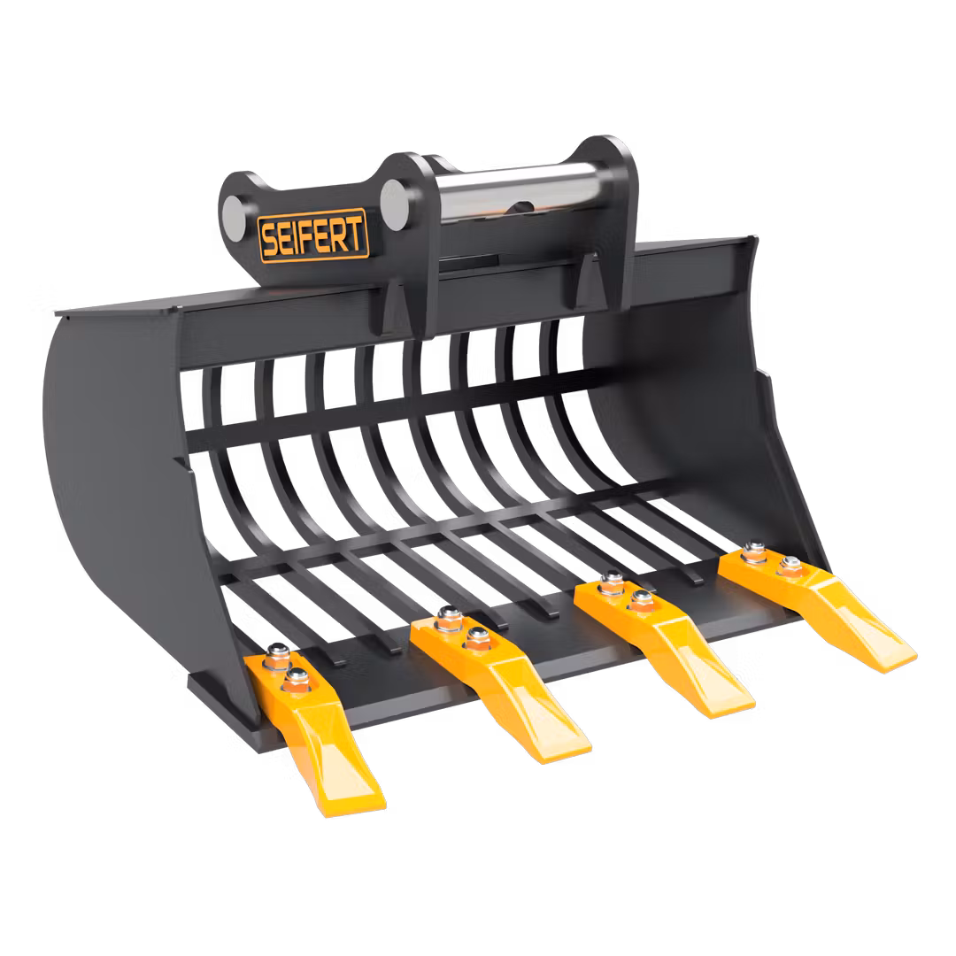 Sieblöffel 60cm 600mm MS01 Symlock 0,5-1to. Fabrikneuer Sieblöffel mit SB01S Aufnahme.Der Sieblöffel eignet sich ideal für diverse Sortier- und Ladearbeiten. Mit einem Gitterabstand von 43mm kann diverses Gestein und andere Baustoffe ausgesiebt werden.Durch die Verwendung von verschleiß- und abriebfesten Stählen werden sehr hohe Standzeiten ermöglicht.Die SB01S Aufnahme ist passend MS01 (Symlock), womit der Löffel als Tief- und Hochlöffel einsetzbar ist.» gefertigt aus verschleißfesten S355J2+N sowie HB400» überstehende Schneiden schützen Schweißnähte und Seitenteile» hochwertige Lackierung» mit Transporthaken» hervorragendes Preis-Leistungs-Verhältnis Anzahl Zähne:4Arbeitsbreite:600 mmAufnahme:SB01S (passend MS01 Symlock)Gewicht:38 kgGewichtsklasse:0,5 - 1 tGrundkörper Material:S355Höhe:400 mmSchneiden Material:HB500Volumen (SAE):41 lZahnsystem:geschraubt Nicht das richtige?Unser Sortiment beinhaltet Anbaugeräte aller Art - auch für größere Gewichtsklassen bis zu 30t. Bitte kontaktieren Sie uns! Foto ist Beispielfoto und kann vom gelieferten Produkt abweichen.