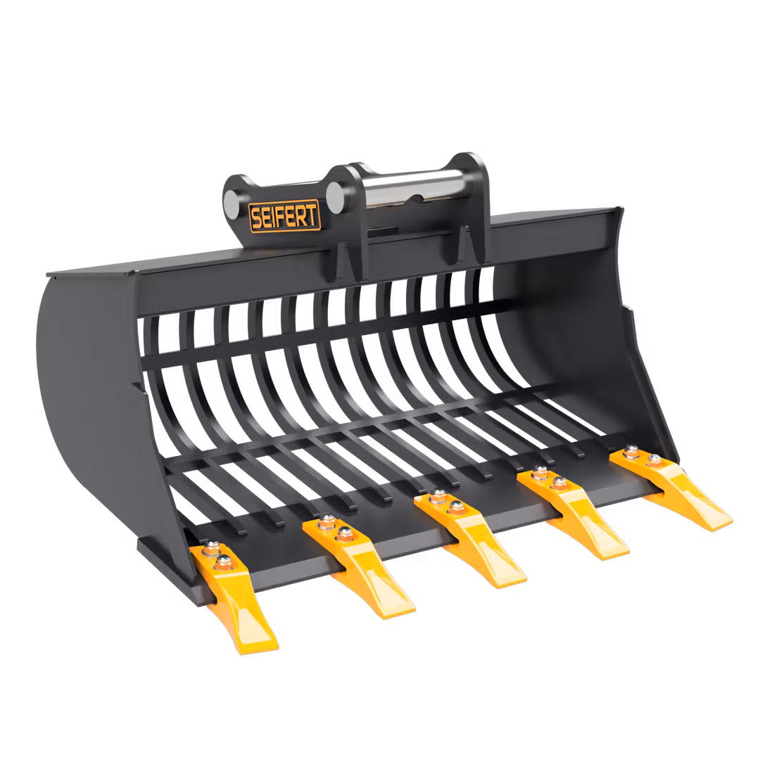 Sieblöffel 80cm 800mm MS01 Symlock 1-2to. Fabrikneuer Sieblöffel mit SB01S Aufnahme.Der Sieblöffel eignet sich ideal für diverse Sortier- und Ladearbeiten. Mit einem Gitterabstand von 44mm kann diverses Gestein und andere Baustoffe ausgesiebt werden.Durch die Verwendung von verschleiß- und abriebfesten Stählen werden sehr hohe Standzeiten ermöglicht.Die SB01S Aufnahme ist passend MS01 (Symlock), womit der Löffel als Tief- und Hochlöffel einsetzbar ist.» gefertigt aus verschleißfesten S355J2+N sowie HB400» überstehende Schneiden schützen Schweißnähte und Seitenteile» hochwertige Lackierung» mit Transporthaken» hervorragendes Preis-Leistungs-Verhältnis Anzahl Zähne:5Arbeitsbreite:800 mmAufnahme:SB01S (passend MS01 Symlock)Gewicht:67 kgGewichtsklasse:1 - 2 tGrundkörper Material:S355Höhe:460 mmSchneiden Material:HB500Volumen (SAE):76 lZahnsystem:geschraubt Nicht das richtige?Unser Sortiment beinhaltet Anbaugeräte aller Art - auch für größere Gewichtsklassen bis zu 30t. Bitte kontaktieren Sie uns! Foto ist Beispielfoto und kann vom gelieferten Produkt abweichen.