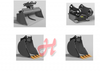 Kombipaket 2,5 bis 3,8to. Einsatzgewicht bestehend aus: 1x Schnellwechsler mechanisch MS03/QC03 inkl. Lasthaken 2x Tieflöffel Kl. 2S, (Schnittbreiten frei wählbar) mit HT-Aufnahme Boden und Seitenteile 8mm, Messer HB400, 150x20mm, geschraubte Zähne / ohne Zähne Mögliche Schnittbreiten Tieflöffel: 300mm 400mm 500mm 600mm 1x Grabenräumlöffel schwenkbar Kl. 2, (Schnittbreiten frei wählbar) Boden und Seitenteile 8mm, Messer HB400, 150x20mm Versteifungssichel und Rückenschneide 1 Zylinder 2x45° mit einstellbarer Drossel Mögliche Schnittbreiten Grabenräumlöffel schwenkbar: 1200mm