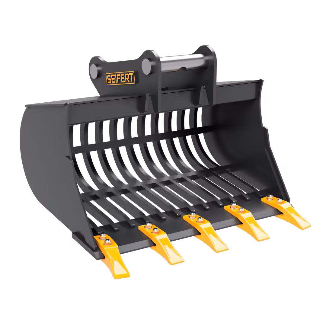 Sieblöffel 80cm 800mm MS03 Symlock 2-3to. Fabrikneuer Sieblöffel mit SB03S Aufnahme.Der Sieblöffel eignet sich ideal für diverse Sortier- und Ladearbeiten. Mit einem Gitterabstand von 45mm kann diverses Gestein und andere Baustoffe ausgesiebt werden.Durch die Verwendung von verschleiß- und abriebfesten Stählen werden sehr hohe Standzeiten ermöglicht.Die SB03S Aufnahme ist passend MS03 (Symlock), womit der Löffel als Tief- und Hochlöffel einsetzbar ist.» gefertigt aus verschleißfesten S355J2+N sowie HB400» überstehende Schneiden schützen Schweißnähte und Seitenteile» hochwertige Lackierung» mit Transporthaken» hervorragendes Preis-Leistungs-Verhältnis Anzahl Zähne:5Arbeitsbreite:800 mmAufnahme:SB03S (passend MS03 Symlock)Gewicht:101kgGewichtsklasse:2 - 3 tGrundkörper Material:S355Höhe:560 mmSchneiden Material:HB500Volumen (SAE):105 lZahnsystem:geschraubt Nicht das richtige?Unser Sortiment beinhaltet Anbaugeräte aller Art - auch für größere Gewichtsklassen bis zu 30t. Bitte kontaktieren Sie uns! Foto ist Beispielfoto und kann vom gelieferten Produkt abweichen.