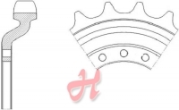 Antriebsrad Kontrollmaße: Teilung: 84mm Innendurchmesser: 161mm Anzahl Zähne: 17 Anzahl Bohrungen:6 Passend für folgende Fahrzeuge: Bobcat: 864 Typ 1 T200 Typ 1 T250 Typ 1 T300 Typ 1