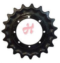 Antriebsrad Kontrollmaße: Teilung: 101mm Innendurchmesser: 190mm Lochkreis: 212mm Anzahl Zähne: 21 Anzahl Bohrungen: 9 Passend für folgende Fahrzeuge: CAT: 302.5 (4AZ) 302.5C (GBB) IHI: 25JX 28J (letzte Serie) 30JX (BK) 30VX 35V4