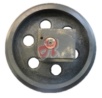 Leitrad mit Gleitstücken, DM 338/300mm, Gesamtbreite: 190mm Kontrollmaße: Gesamtdurchmesser: 338mm Durchmesser Lauffläche: 300mm Breite Lauffläche: 80mm Breite Mittelsteg: 40mm Gesamtbreite: 190mm Länge Gleitstück: 115mm Höhe Gleitstück: 88mm Passend für folgende Maschinen: CASE - POCLAIN CK36 CK38 KUBOTA K038 K040 KH030 KH101 KH90 KX101 KX121-2