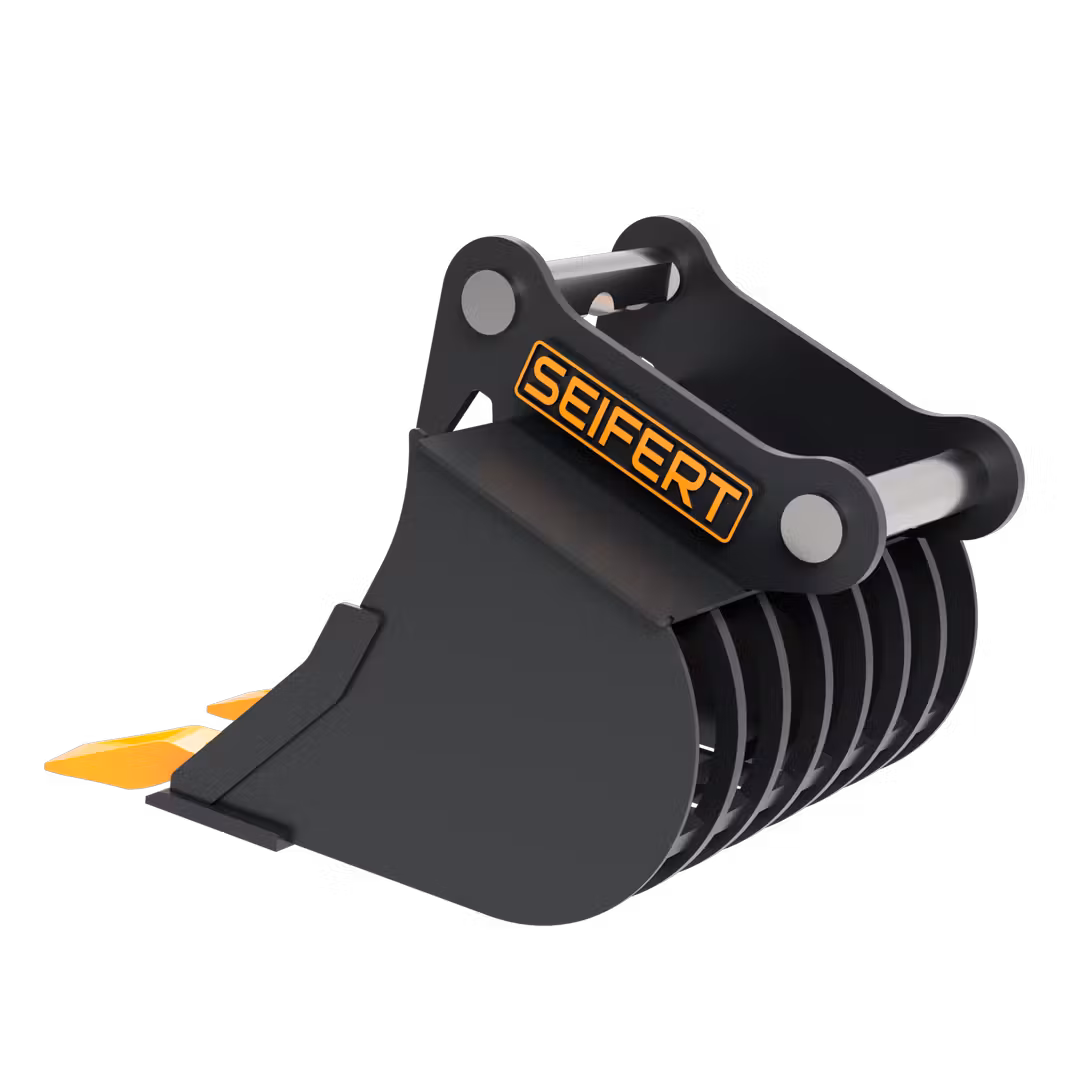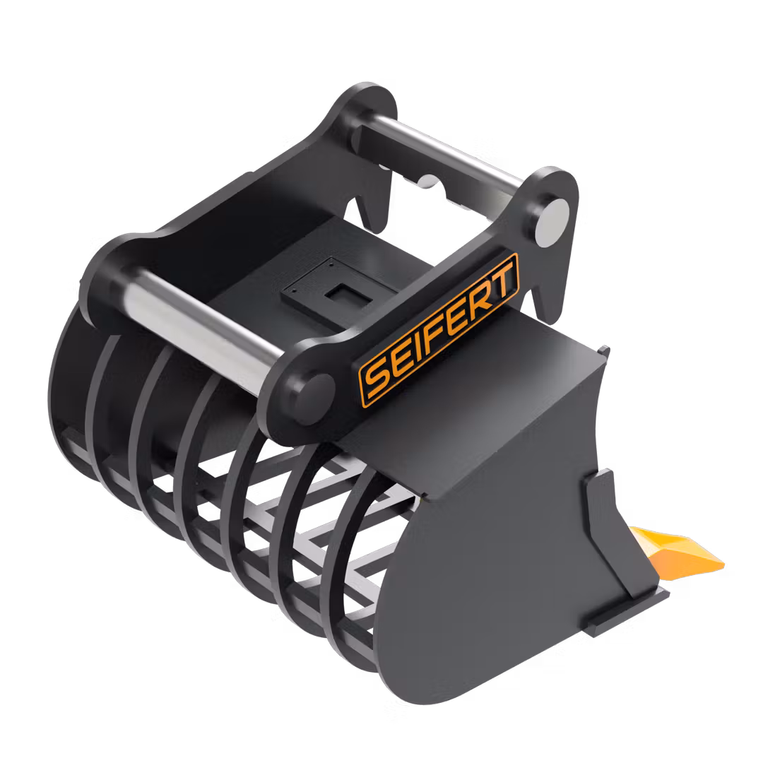 Der Sieblöffel eignet sich ideal für diverse Sortier- und Ladearbeiten. Mit einem Gitterabstand von 45mm kann diverses Gestein und andere Baustoffe ausgesiebt werden.